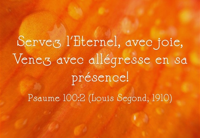 Servez, servez, servez l’Éternel; servez l’Éternel avec allégresse